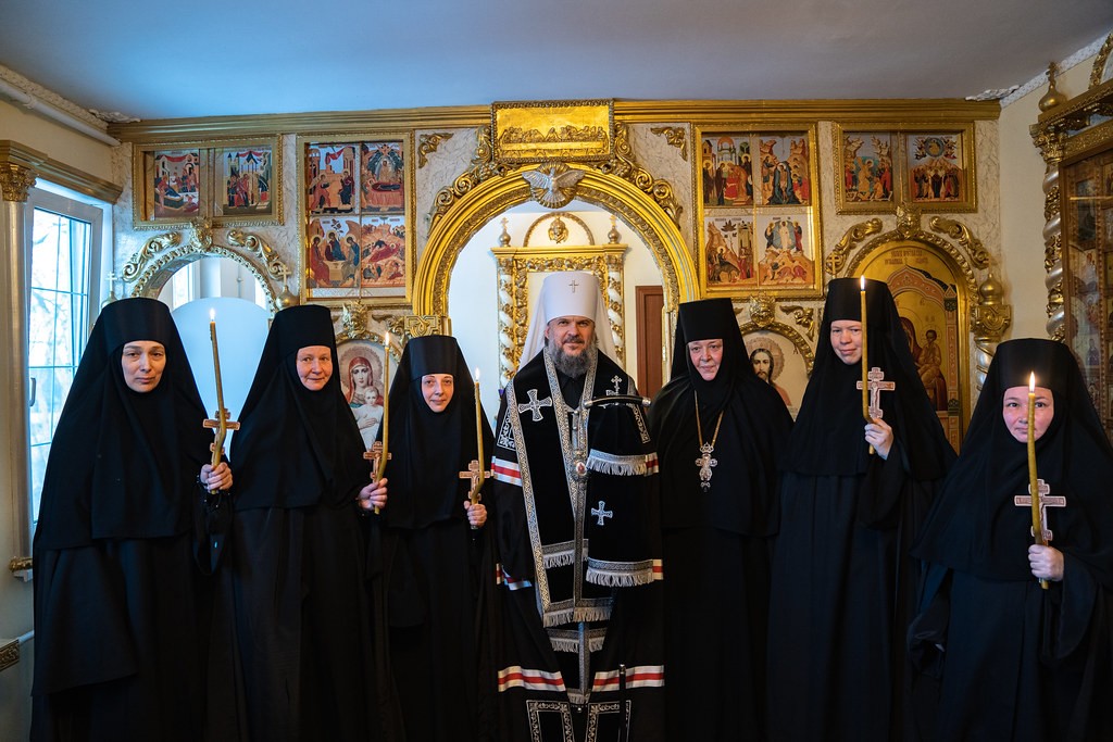 Митрополит Амвросий совершил монашеский и иноческий постриги, а также благословил на ношение одежд послушниц.