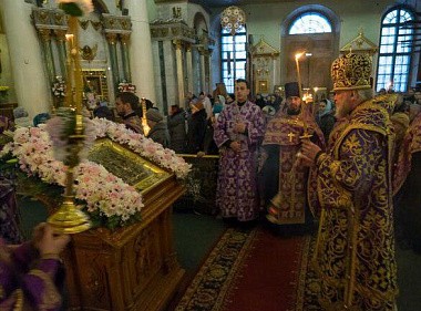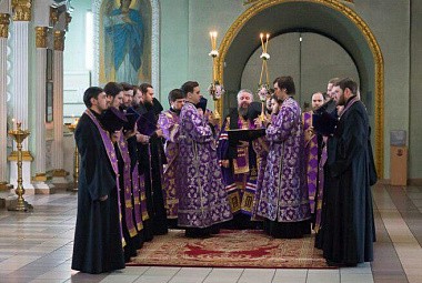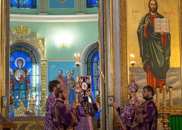Накануне митрополит Курский и Рыльский Герман и епископ Щигровский и Мантуровский Паисий совершили всенощное бдение в кафедральном соборе.