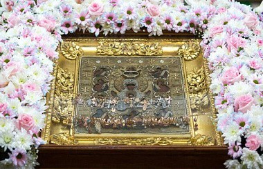 Затем глава Курской митрополии поздравил молящихся с праздником, установленным в воспоминание чудесного спасения иконы Божией Матери «Знамение» Курской-Коренной от взрыва в Знаменском соборе в 1898 году. Сто двадцать лет назад террористы решили уничтожить народную святыню, подложив самодельную бомбу в соборе у сени, где находилась чудотворная икона Божией Матери. Они хотели уничтожить святыню и поколебать веру в заступничество и покровительство Божией Матери, подаваемые верующим через Ее чудотворный образ «Знамение» Курский-Коренной.