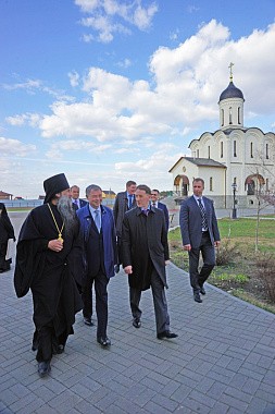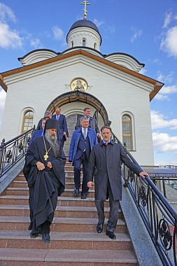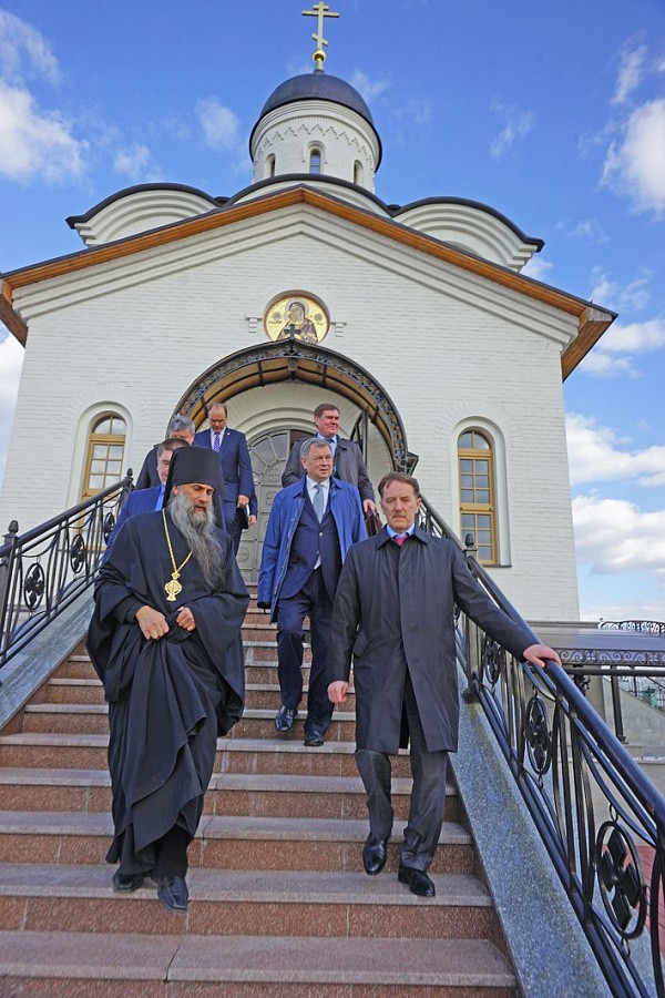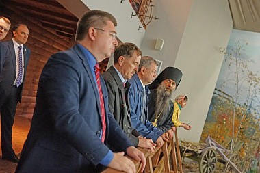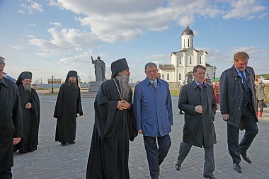 Полномочный представитель Президента РФ в ЦФО А.В. Гордеев с губернатором Калужской области А.Д. Артамоновым и другими высокопоставленными лицами посетили Владимирский скит Калужской Свято-Тихоновой мужской пустыни и музей-диораму «Великое стояние на Угре 1480 года».