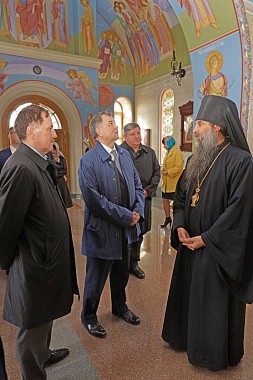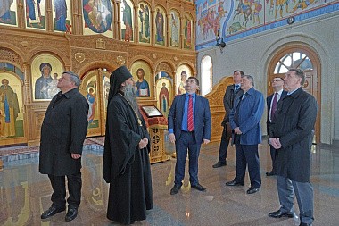 В сопровождении наместника монастыря архимандрита Тихона (Завьялова) гости сначала посетили Владимирский храм скита, затем музей-диораму и смотровую площадку на башне музея-диорамы, где осмотрели окрестности Великого стояния на Угре. Увиденное было высоко оценено всеми, о чем в благодарственном отзыве в книге почетных посетителей написал Алексей Васильевич Гордеев.
