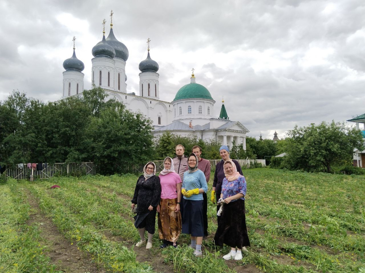 В этот раз у волонтеров основная работа была на монастырском огороде, трудники помогали в прополке картофеля. Также были послушания в трапезной и в кельях для паломников.