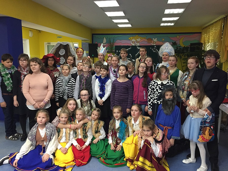 На сцене школы-интерната для незрячих и слабовидящих детей № 1 имени К.К. Грота был представлен детский спектакль "Посиделки у Евфросинии", а также была организована игровая программа со Снегурочкой и сказочными персонажами для детей с ограничениями по здоровью.