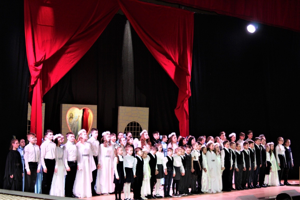 Детский музыкальный коллектив «Отрада» принял участие в ряде сцен спектакля и исполнил несколько песен, в том числе «Соловушку» П.И. Чайковского, «Любовь Христа» и песнопение «Богородице Дево, радуйся».