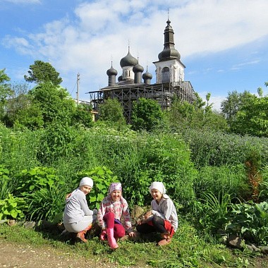 Весь день проходил благодатно для души: вставали с молитвой, если были богослужения, ходили в храм, трудились, вечером совершали молитвенное правило в келиях. А накануне дня первоверховных апостолов Петра и Павла все исповедались и в сам праздник причастились Святых Христовых Таин. В этот вечер на берегу Шексны трудники жгли костер, а детям благословили пожарить сосиски. А от того, что в это дождливое лето даже несколько раз удалось искупаться в реке, радости у детей не было предела.