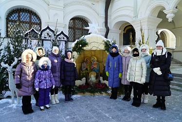 7 января 2024 года воспитанницы детского православного пансиона «Отрада» при Свято-Никольском Черноостровском женском монастыре города Малоярославца Калужской области посетили Патриаршую елку в Храме Христа Спасителя.