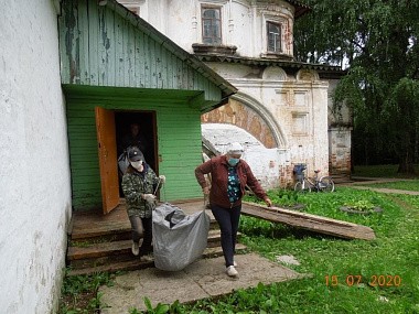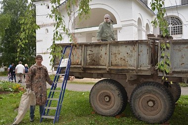 В работе приняли участие неравнодушные к судьбе монастыря устюжане. В ходе субботника скошены заросли травы у входа в Михайло-Архангельский собор и в Введенский храм, вокруг хозяйственных построек, примыкающих к Владимирской надвратной церкви, убран строительный мусор.