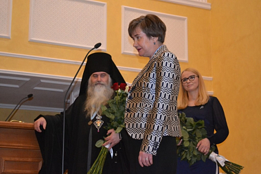 Затем на сцену духовной семинарии были приглашены учащиеся Нижегородской детской художественной школы № 1, которые создали ряд рисунков «Предания о преподобном». Через эти яркие, живописные картины образ святого Макария стал еще более понятным и близким. Архимандрит Тихон (Затекин) вместе с заместителем директора филиала кадастровой палаты по Нижегородской области Виктором Будченко наградили юных художников ценными подарками и благодарственными письмами.