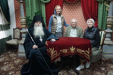 В Нижний Новгород прибыли двоюродный внук Великого архидиакона, внук священномученика протоиерея Николая Розова – доктор культурологии, профессор Института русской литературы Российской академии наук Санкт Петербурга Александр Николаевич Розов с супругой Натальей Алексеевной и дочерью Дарьей Александровной. В обители их встретил игумен архимандрит Тихон (Затекин).