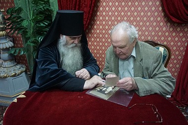 В беседе после знакомства гостей с обителью архимандрит Тихон сообщил, что к 145-летию со дня рождения Константина Розова завершает монографию о нем. Александр Розов передал в церковно-археологический музей две фотографии и визитную карточку, принадлежавшую Великому архидиакону.
