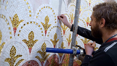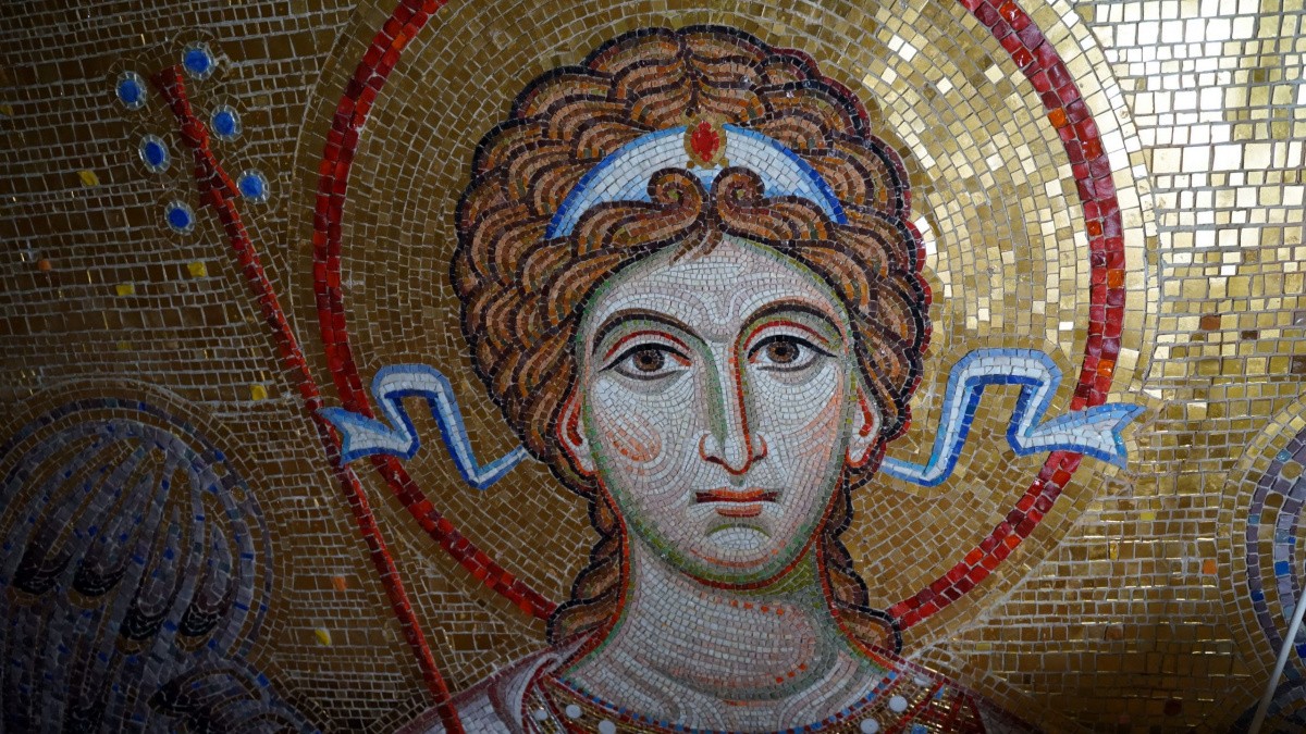 В Благовещенском соборе Свято-Троицкого Серафимо-Дивеевскогоженского монастыря продолжается украшение стен и сводов храма мозаичными композициями. В настоящее время практически завершен монтаж мозаики в малом барабане собора.
