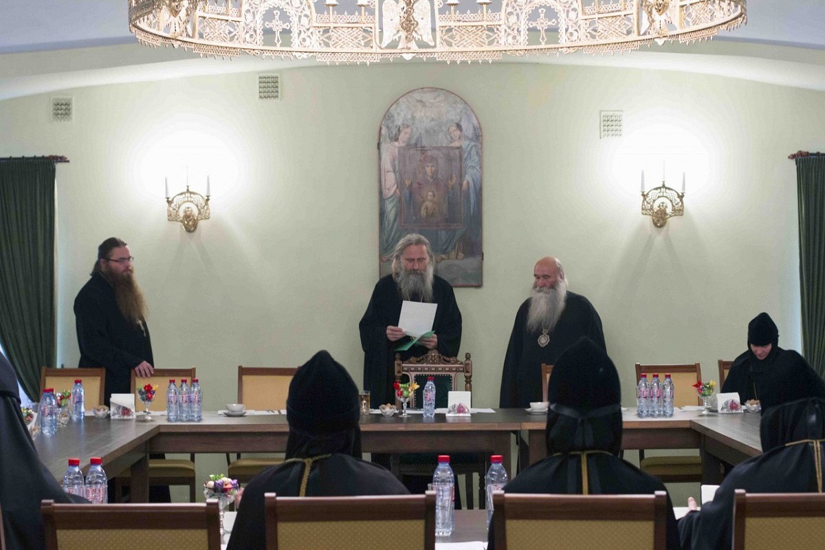 В первой части совещания участники заслушали указ Святейшего Патриарха Московского и всея Руси Кирилла о преобразовании Патриаршего подворья в бывшем Андреевском монастыре с храмами Воскресения Христова в Пленницах, апостола евангелиста Иоанна Богослова (архангела Михаила) и мученика Андрея Стратилата в Андреевский ставропигиальный мужской монастырь города Москвы.