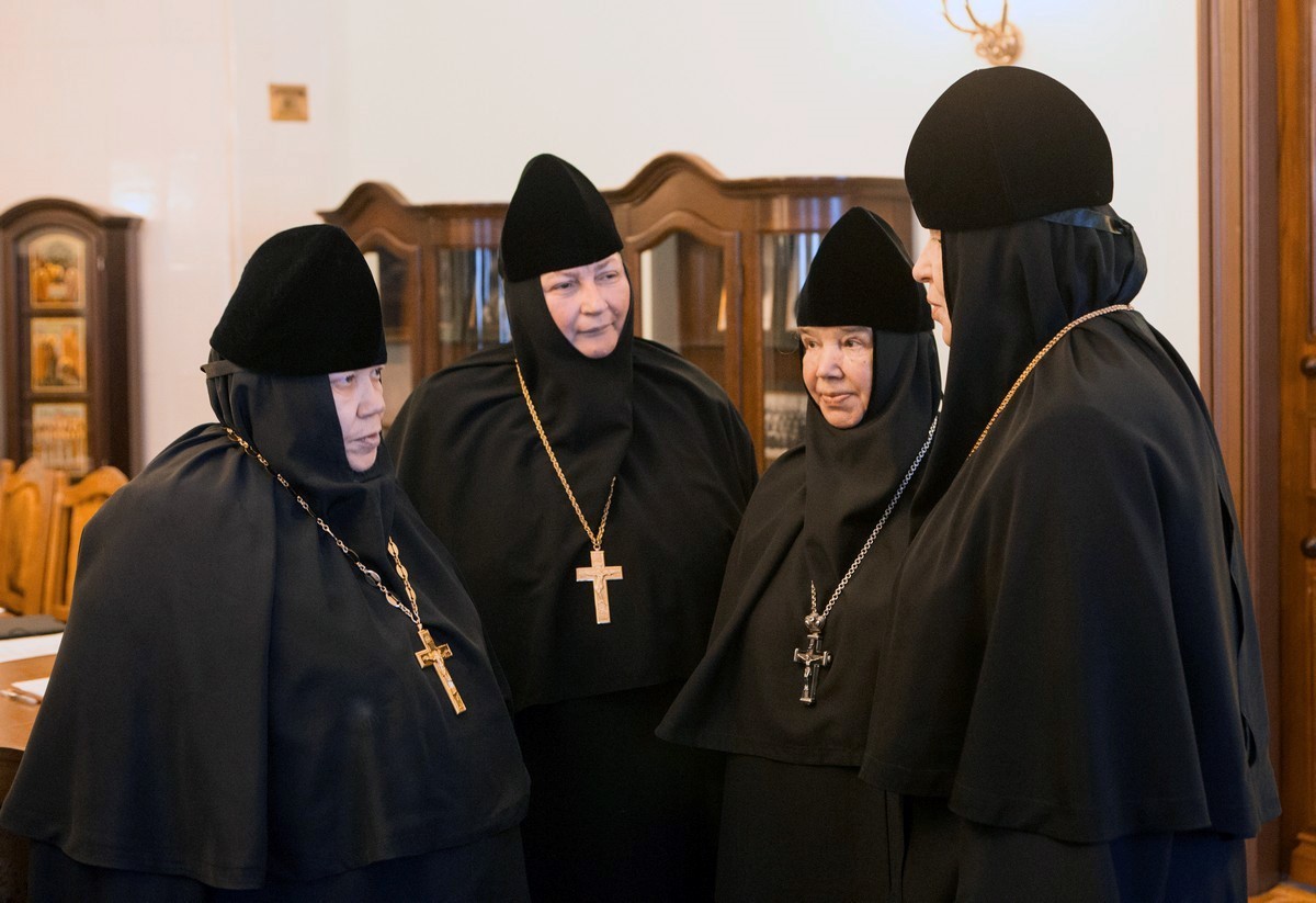 Начиная работу совещания, игумены и игумении поздравили Председателя Синодального отдела по монастырям и монашеству архиепископа Сергиево-Посадского Феогноста с Днем тезоименитства (27 марта) и Днем архиерейской хиротонии (31 марта). Члены Синодального отдела подарили Его Высокопреосвященству панагию и крест.