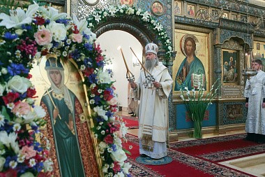 По окончании Литургии состоялся крестный ход вокруг собора Рождества Пресвятой Богородицы, после чего в храме было совершено славление с молитвой святой праведной Иулиании, княгине Вяземской и Новоторжской.