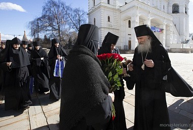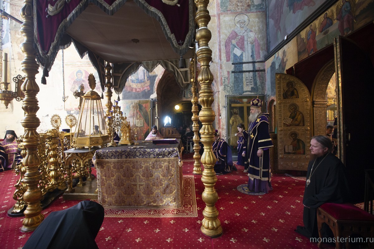 За Литургией молились: архиепископ Горноалтайский и Чемальский Каллистрат; заместитель председателя Синодального отдела по монастырям и монашеству, настоятельница Зачатьевского ставропигиального женского монастыря игумения Иулиания (Каледа) с сестрами; член коллегии СОММ, настоятельница Богородице-Рождественского ставропигиального женского монастыря игумения Викторина (Перминова) с сестрами; руководитель Правового управления Московской Патриархии, настоятельница Алексеевского ставропигиального женского монастыря игумения Ксения (Чернега); многочисленные гости и паломники.