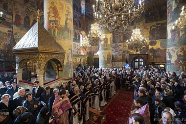 Богослужебные песнопения исполнил хор Московского подворья Троице-Сергиевой лавры.