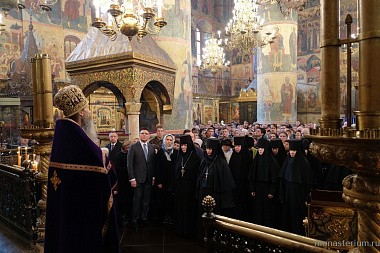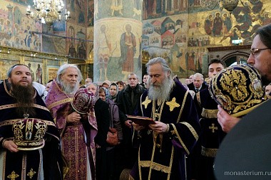 Сегодня Русскую Церковь возглавляет Предстоятель – Святейший Патриарх Московский и всея Руси Кирилл. Жизнь его всецело посвящена Церкви, и тяжек крест его. Потому-то, когда он приезжает в монастыри, в другие епархии, он всегда просит только одного – молитв. Но под молитвой он подразумевает не только слова. Когда Патриарх просит молитв, он просит о единодушии – чтобы мы были единодушны в служении Христу. Чтобы нас ничто не разделяло в этом служении, чтобы мы не искали поводов для распрей и раскола. Мы служим Христу... Единство – это основа церковной жизни. Во все века Первосвятители Московские призывали хранить единство Церкви. Не только на словах, но и внутренней, сердечной, молитвой, понимая, что Сам Господь правит Церковью и каждым из нас. От нас требуется только одно – чтобы мы были едины. Зло, которое всегда было, и есть, и будет, направлено на то, чтобы разъединить, расколоть. А сегодня при тех возможностях, которые имеет злонамеренный человек, можно очень быстро соблазнить любого и бросить тень на любого из нас.