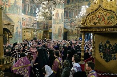 За Литургией молились: заместитель председателя Синодального отдела по монастырям и монашеству, настоятельница Зачатьевского ставропигиального женского монастыря игумения Иулиания (Каледа); настоятельница Богородице-Рождественского ставропигиального женского монастыря игумения Викторина (Перминова); полномочный представитель Президента Российской Федерации в Центральном федеральном округе А.Д. Беглов; советник полномочного представителя Президента Российской Федерации в Центральном федеральном округе М.Н. Белогубова; первый заместитель председателя Московской областной Думы Н.Ю. Чаплин; главный федеральный инспектор по городу Москве В.М. Лавленцев; руководитель Роскомнадзора А.А. Жаров; заместитель министра финансов Российской Федерации А.Ю. Иванов.