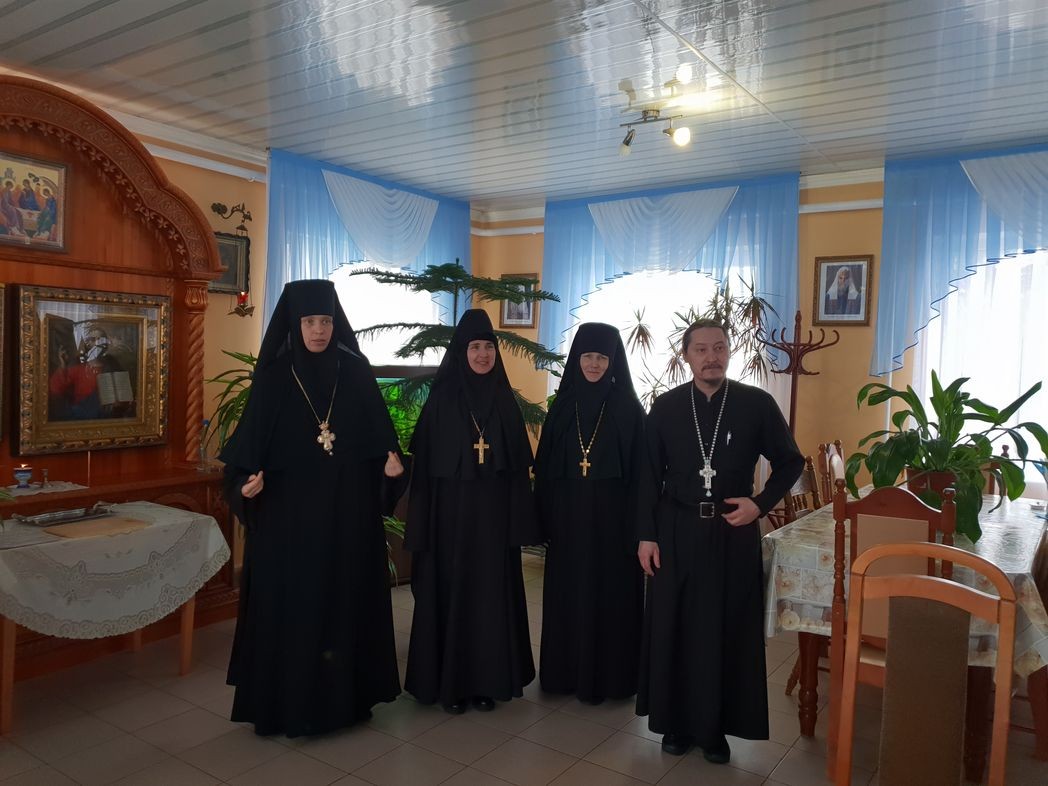 В монастырской трапезной состоялась встреча членов Коллегии с сестрами обители, в ходе которой игумен Петр (Мажетов) обратился к насельницам обители с пастырским словом и ответил на их вопросы о духовной жизни.