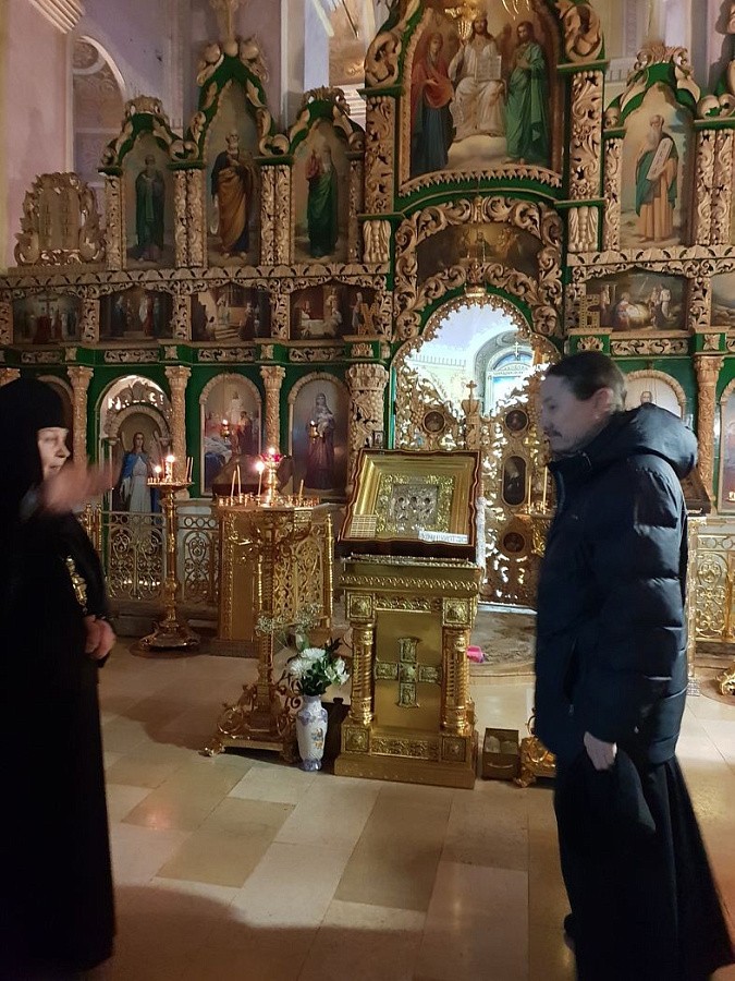 Посещение монастыря началось с поклонения святым мощам преподобного Иоанна, затворника Сезеновского и мощам его учениц преподобных Дарии и Серафимы.