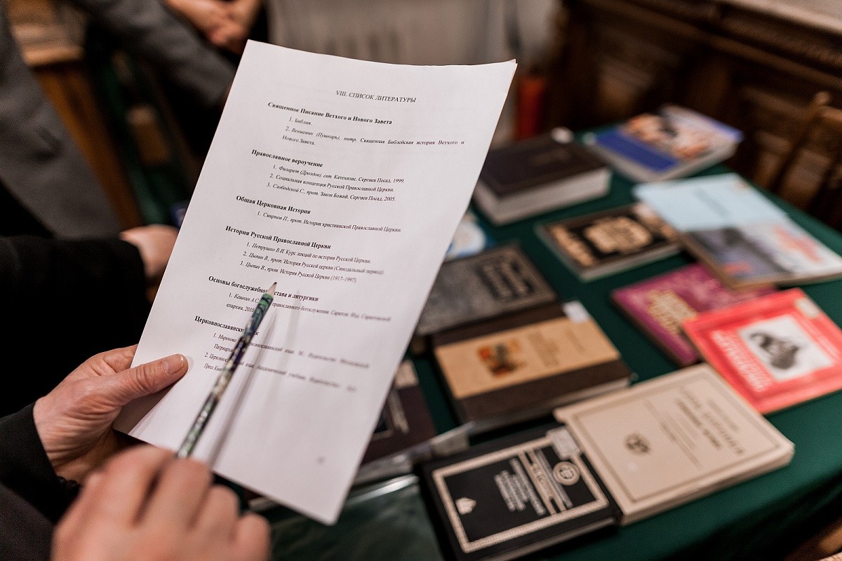 Комиссия посетила актовый зал, библиотеку, читальный зал, профессорскую Духовной академии, учебную аудиторию и ознакомилась с материально-техническим обеспечением и учебной литературой.