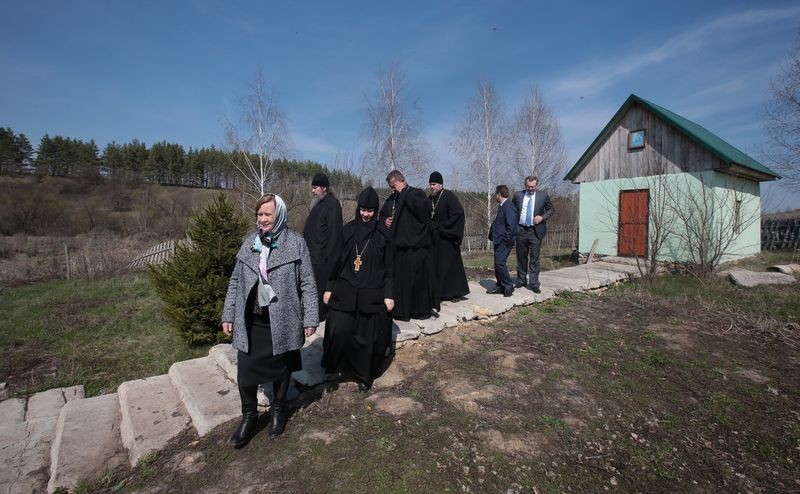 Высоких гостей встречала настоятельница монастыря игумения Феофания (Проценко), которая провела экскурсию по храмам и иным строениям обители. В ходе осмотра монастыря был затронут вопрос о передаче древней монастырской земли в церковную собственность.