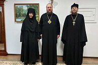 По окончании молитвы гостей приветствовали митрополит Морфский Неофит и настоятельница обители игумения Иустина.