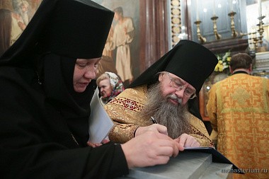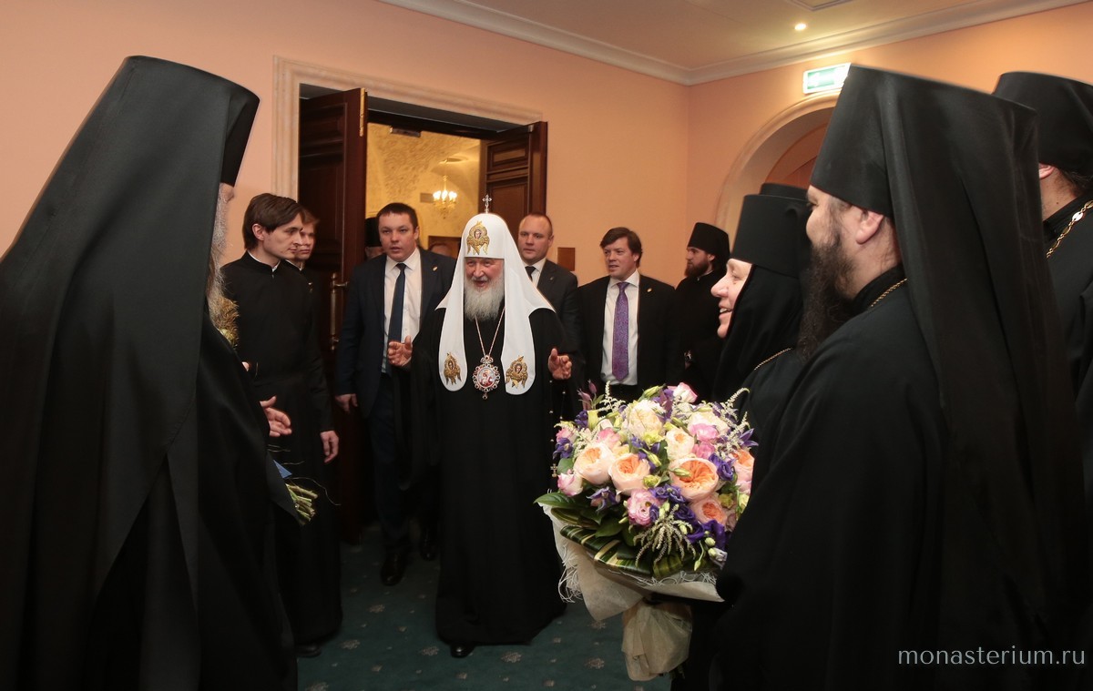 В этот день Предстоятеля Русской Православной Церкви от лица монашествующих поздравили председатель Синодального отдела по монастырям и монашеству, наместник Троице-Сергиевой лавры архиепископ Сергиево-Посадский Феогност; заместитель председателя Синодального отдела по монастырям и монашеству, настоятельница Зачатьевского ставропигиального женского монастыря Москвы игумения Иулиания (Каледа); игумены и игумении ставропигиальных и епархиальных монастырей.