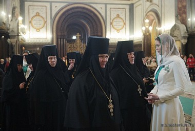 В Храме Христа Спасителя молились представитель Патриарха Антиохийского и всего Востока митрополит Филиппопольский Нифон, игумен Русского на Афоне Пантелеимонова монастыря архимандрит Евлогий (Иванов); председатель Синодального отдела по взаимоотношениям Церкви с обществом и СМИ В.Р. Легойда; руководитель Художественно-производственного предприятия Русской Православной Церкви «Софрино» Е.А. Пархаев; президент Международного фонда единства православных народов В.А. Алексеев; настоятельницы женских обителей, священнослужители Москвы и Подмосковья, сотрудники синодальных и иных церковных структур, представители приходских советов, преподаватели и учащиеся церковных учебных заведений.