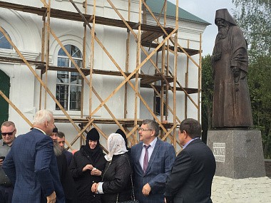 В сопровождении правящего архиерея Елецкой епархии игумении осмотрели мемориальный комплекс, включающий в себя родительский дом преподобного Силуана, часовню на месте келии, где молился святой, а также бронзовый памятник преподобного в монашеском облачении с иконой Спасителя (архитектор – А.К. Тихонов, член-корреспондент Российской академии художеств, заслуженный архитектор РФ; скульптор – И.Н. Новиков, член-корреспондент Российской академии художеств, член союза художников Москвы).