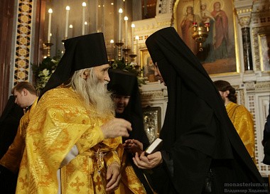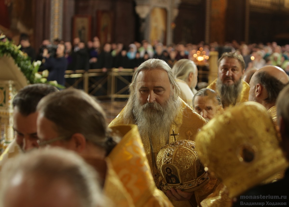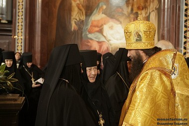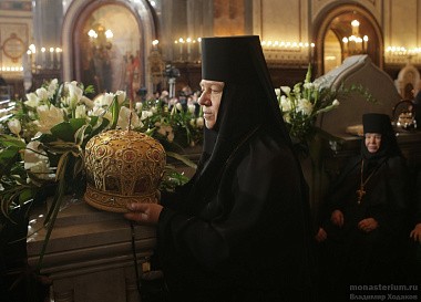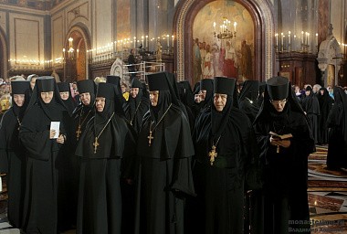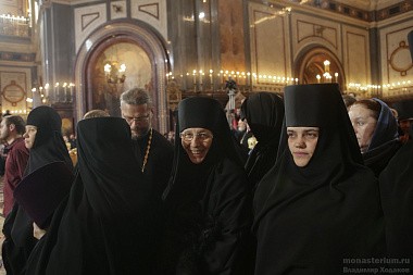 В Храме Христа Спасителя молились председатель Синодального отдела по взаимоотношениям Церкви с обществом и СМИ В.Р. Легойда, игумены и игумении монастырей, сотрудники синодальных учреждений, представители православных молодежных организаций, многочисленные верующие.