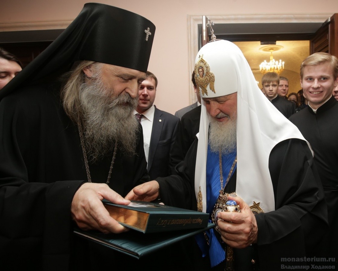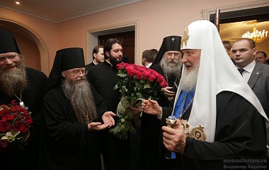 По окончании праздничного богослужения архиепископ Феогност поздравил Святейшего Патриарха Кирилла от лица монашествующих Русской Православной Церкви с 70-летним юбилеем и преподнес в дар Его Святейшеству памятный фотоальбом «Радость приближения к Богу. 70 лет в Церкви» (подготовлен редакторами издательства Данилова ставропигиального мужского монастыря, отпечатан в типографии Патриаршего издательско-полиграфического центра г. Сергиева Посада), посвященный визитам Предстоятеля Русской Православной Церкви в ставропигиальные монастыри.