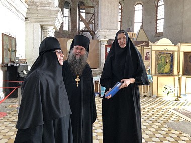От Ярославской митрополии комиссию в рабочей поездке сопровождал руководитель курсов базовой подготовки в области богословия для монашествующих, наместник Спасо-Яковлевского мужского монастыря г. Ростова Великого игумен Августин (Неводничек).