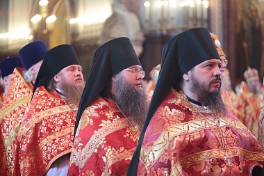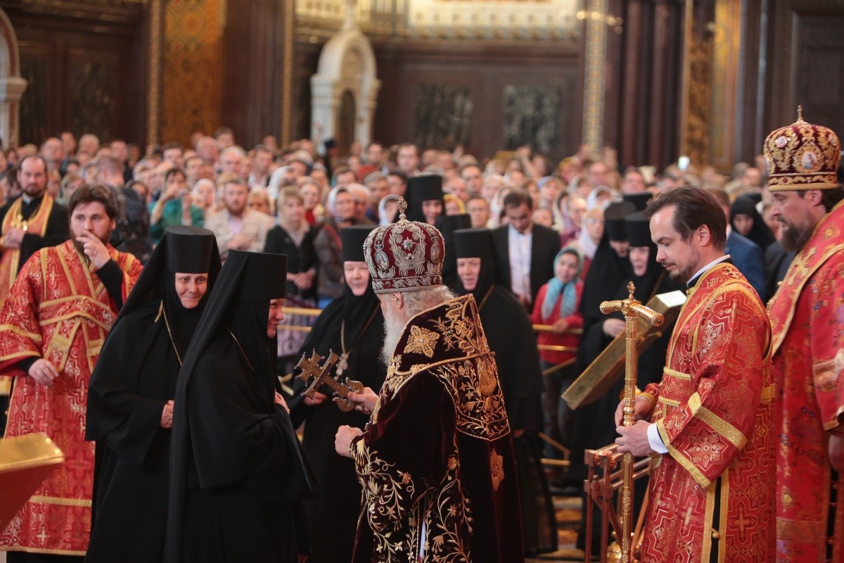 В этот день Предстоятель Русской Православной Церкви возглавил Божественную литургию в кафедральном соборном Храме Христа Спасителя в Москве.