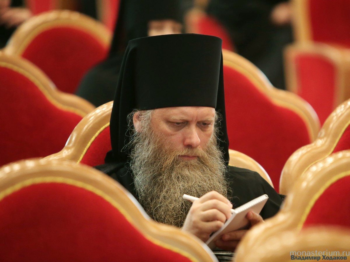 Руководитель рабочей группы архимандрит Порфирий (Шутов), наместник Спасо-Преображенского Соловецкого ставропигиального мужского монастыря, познакомил присутствующих с присланными из епархий предложениями по проекту типового устава внутренней жизни монастырей и ответил на заданные вопросы.