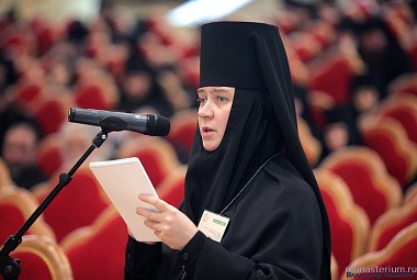 Игумения Мария (Воробьева), настоятельница Пермского Успенского женского монастыря, в докладе «Основные трудности усвоения добродетели послушания в современной монашеской жизни: причины, пути преодоления» описала духовное состояние молодых людей, приходящих в монастырь сегодня. Желая чистоты и святости, они часто имеют лишь романтические представления о монашестве, не желая трудиться над возделыванием своих душ. Игумения Мария уделила особое внимание необходимости духовного воспитания новоначальных сестер, пришедших из мира с искаженными не только духовными, но и нравственными понятиями о добре и зле, достоинстве и гордости.
