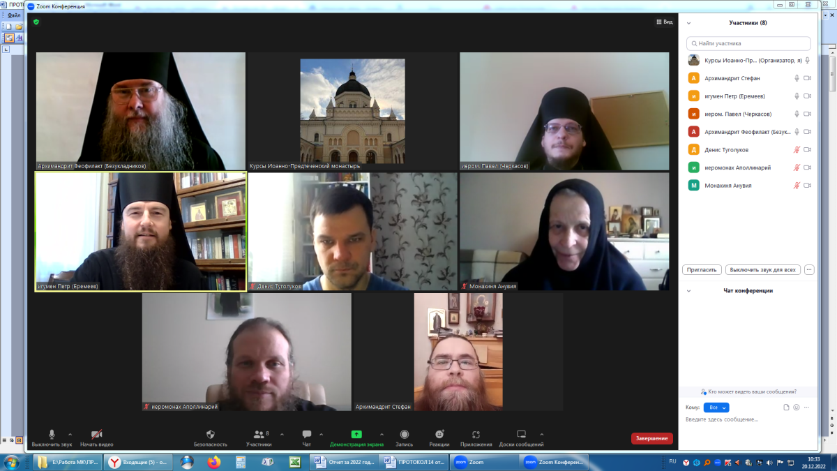 20 декабря 2022 года на платформе ZOOM состоялось онлайн заседание Межведомственной комиссии по вопросам образования монашествующих Русской Православной Церкви под председательством игумена Петра (Еремеева).