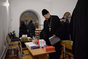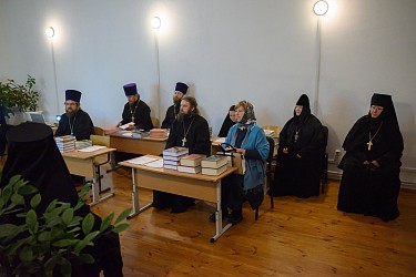 В завершение инспекционной работы члены комиссии встретились с епископом Алапаевским и Ирбитским Сергием, с которым обсудили актуальные вопросы организации работы курсов в монастырях. Члены комиссии передали владыке Сергию учебно-методические комплексы дисциплин базовой части курсов, изданные в виде приложения к журналу Синодального отдела по монастырям и монашеству «Монастырский вестник».