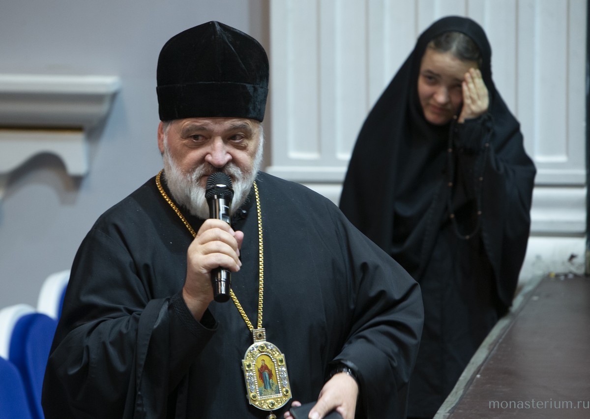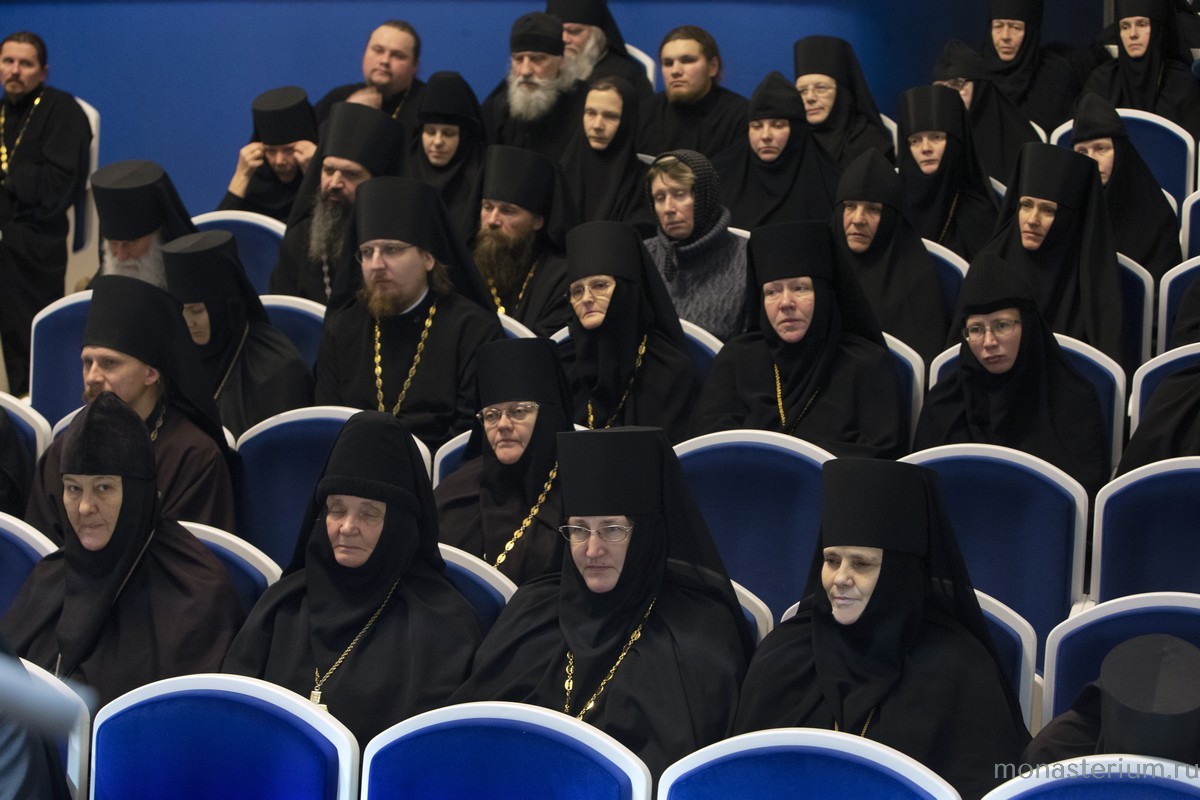 Затем митрополит Нижегородский и Арзамасский Георгий пригласил для участия в дискуссии за стол президиума игумена Варфоломея (Петрова), наместника Николо-Угрешского ставропигиального мужского монастыря, игумена Петра (Мажетова), настоятеля Свято-Косьминской мужской пустыни Екатеринбургской митрополии; игумена Исаакия (Иванова), настоятеля Иоанно-Богословского монастыря Рязанской епархии; игумению Сергию (Конкову), настоятельницу Свято-Троицкого Серафимо-Дивеевского женского монастыря; игумению Евдокию (Левшук), настоятельницу Спасо-Евфросиниевского ставропигиального женского монастыря в Полоцке (Белорусский экзархат), игумению Антонию (Минину), настоятельницу Свято-Троицкого Александро-Невского ставропигиального женского монастыря в с. Акатове.