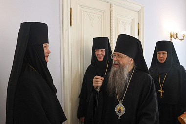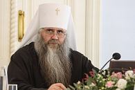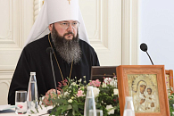 Далее владыка Амвросий пригласил выступить с докладом игумению Сергию (Конкову), настоятельницу Свято-Троицкого Серафимо-Дивеевского женского монастыря.