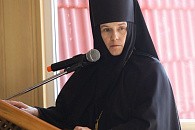 С докладом «Значение правила в поддержании литургичности монастырской жизни» выступила игумения Варвара (Шурыгина), настоятельница Свято-Георгиевского женского монастыря Пятигорской и Черкесской епархии. «Сегодня, говоря о содержательной стороне жизни монаха, мы вновь возвращаемся из храма в келию. Невозможно со всей серьезностью подходить к богослужению, не имея твердой основы в правиле келейном. Более того, то духовное сокровище, которое инок износит из храма, должно быть приумножено им в своей частной молитве», – сказала матушка Варвара.
