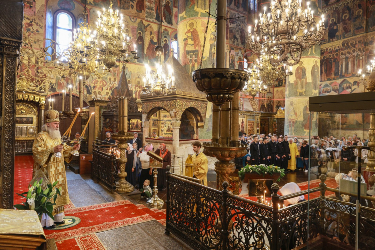 28 июня 2025 года, в день памяти святителя Ионы, митрополита Московского и всея Руси, чудотворца, председатель Синодального отдела по монастырям и монашеству, наместник Донского ставропигиального мужского монастыря митрополит Каширский Феогност совершил утреню и Божественную литургию в Патриаршем Успенском соборе Московского Кремля.