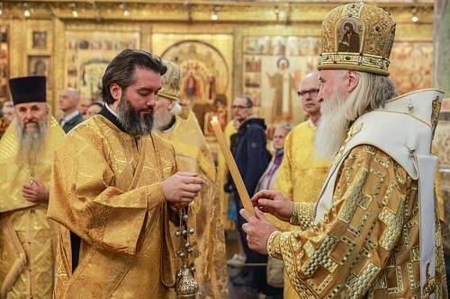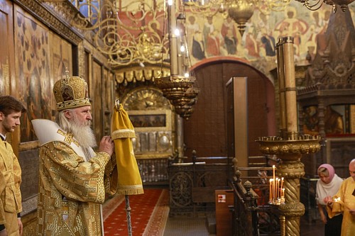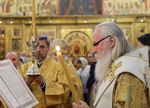 Его Высокопреосвященству сослужили секретарь Патриарха Московского и всея Руси по г. Москве протопресвитер Владимир Диваков, ризничий Патриаршего Успенского собора и храмов Московского Кремля, настоятель Патриаршего подворья храмов в Зарядье г. Москвы протоиерей Вячеслав Шестаков, столичное духовенство.