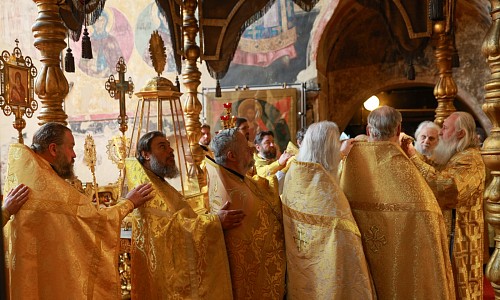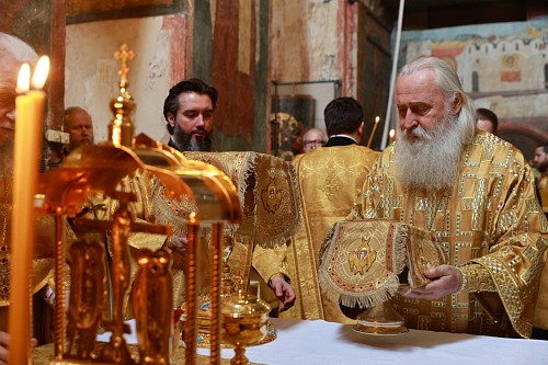 По окончании Литургии митрополит Феогност совершил славление перед ракой с мощами святителя Ионы, митрополита Московского и всея Руси, чудотворца.
