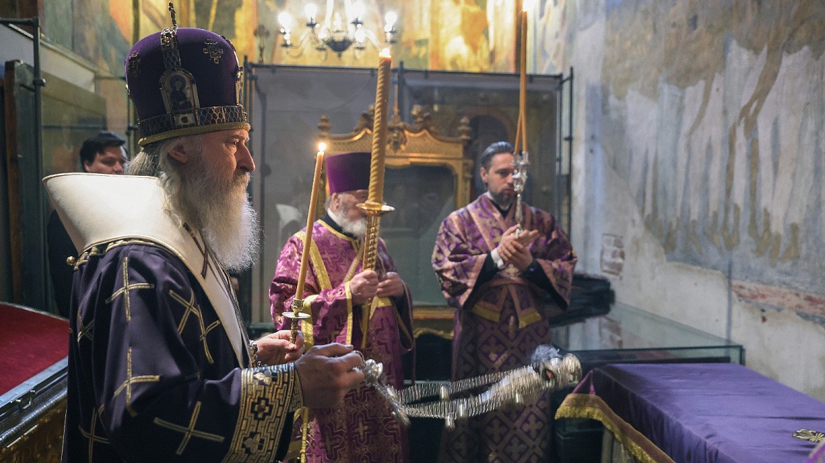 Богослужебные песнопения исполнил хор Донского монастыря.