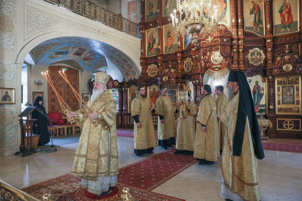 За богослужением молились: епископ Можайский Иосиф, наместник Введенского ставропигиального мужского монастыря Оптина пустынь; игумения Иулиания (Каледа), заместитель председателя Синодального отдела по монастырям и монашеству, настоятельница Зачатьевского ставропигиального женского монастыря; архимандрит Сергий (Воронков), наместник Успенского Иосифо-Волоцкого ставропигиального мужского монастыря; игумения Антония (Минина), настоятельница Свято-Троицкого Александро-Невского ставропигиального женского монастыря; игумения Неонилла (Фролова), настоятельница Никольского Шостьенского ставропигиального женского монастыря; представители ставропигиальных обителей, приехавшие по благословению наместников и настоятельниц для участия в собрании.