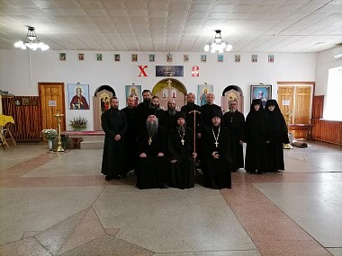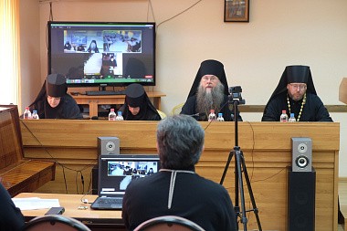 Затем члены комиссии посетили основную базовую учебную площадку – Екатеринодарскую духовную семинарию. Здесь прошла беседа с руководством и преподавателями, игуменами и игумениями монастырей. Архимандрит Феофилакт сообщил о целях и задачах обучения монашествующих, подробно рассказал о программе обучения и ответил на вопросы. На встрече присутствовали: ректор Екатеринодарской духовной семинарии протоиерей Михаил Литвинко, руководитель курсов иеромонах Корнилий (Иванов), заведующий учебно-методическим отделом иерей Александр Ливенский, методист курсов Т.С. Ашурко, игумения Тавифа (Зоро), настоятельница Марие-Магдалинского женского монастыря станицы Роговской (Ейская епархия), игумения Неонилла (Кузьмина), настоятельница Краснодарского монастыря в честь иконы Божией Матери «Всецарица», а также преподаватели: прот. Кирилл Коршунов, прот. Александр Бордунов, иерей Максим Ханов, иерей Максим Топоров, иерей Владимир Бондаренко, иерей Михаил Еремин, и.о. зав. кафедры церковно-практических дисциплин иерей Андрей Кретов, и.о. зав. кафедры богословия иерей Евгений Мельников. Дистанционно принимала участие во встрече игумения Зосима (Быстрова), настоятельница монастыря в честь иконы Божией Матери «Нерушимая стена» г. Апшеронска.