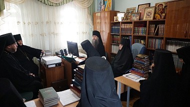 После встречи с руководством и преподавателями, игуменами и игумениями монастырей члены выездной комиссии проверили документацию курсов, библиотечный фонд для слушателей. Комиссия осмотрела также аудитории и компьютерное оборудование для дистанционного обучения.