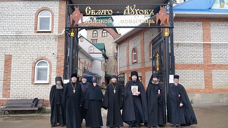 Затем комиссия посетила сам Свято-Духов мужской монастырь города Тимашевска Ейской епархии. По благословению настоятеля, архимандрита Иоанна (Коновалова) гостей встречал благочинный обители – иеромонах Стратоник (Шахбазов). Здесь члены выездной группы провели аттестацию слушателей трех монастырей: Свято-Духова мужского монастыря, мужского монастыря Екатерино-Лебяжская Николаевская пустынь, и в онлайн формате был принят зачет у одной слушательницы из Троице-Георгиевского женского монастыря города Сочи, село Лесное.