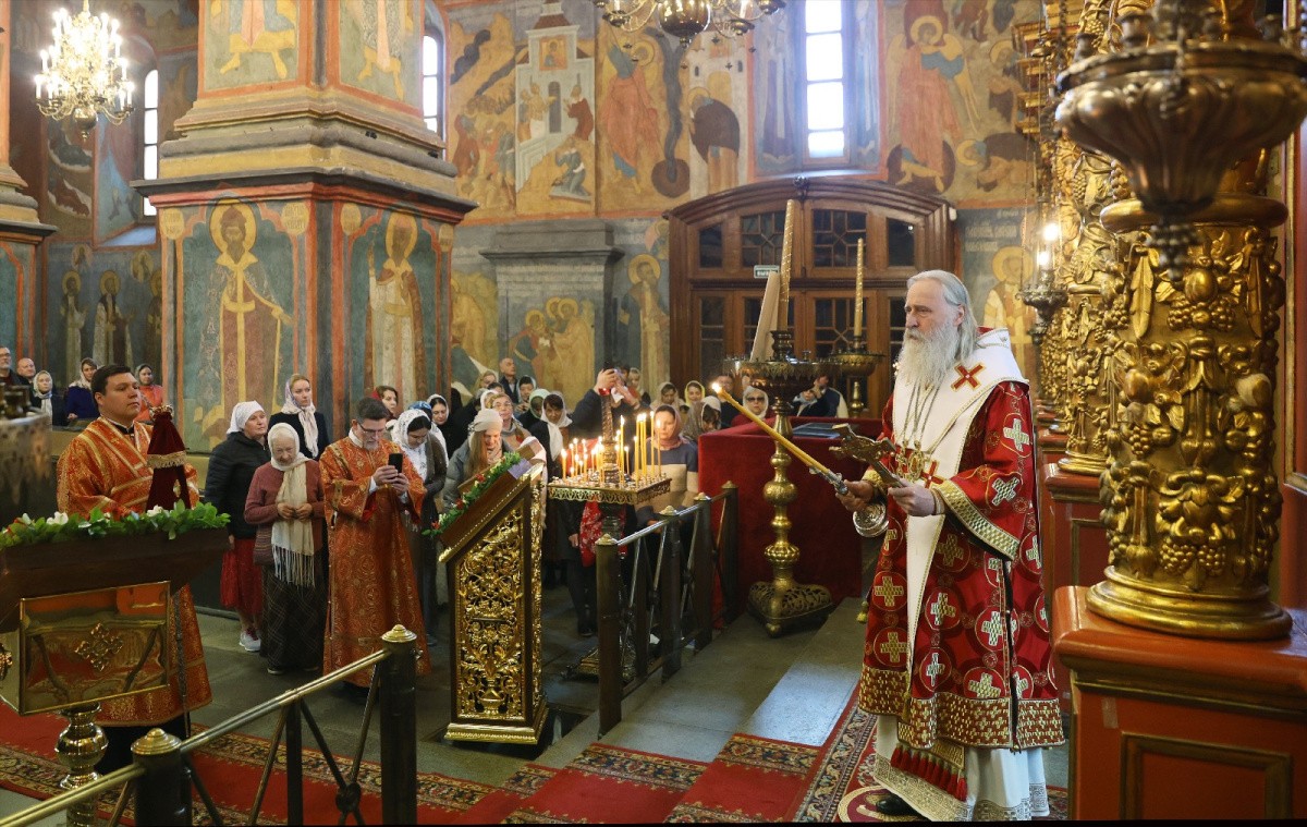 30 апреля 2023 года, в Неделю 3-ю по Пасхе, святых жен-мироносиц, председатель Синодального отдела по монастырям и монашеству, наместник Донского ставропигиального мужского монастыря Москвы митрополит Каширский Феогност совершил пасхальную утреню и Божественную литургию в Архангельском соборе Московского Кремля.